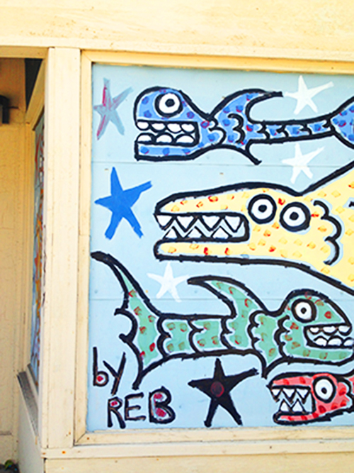 In years past, during Grand Rapid’s leaner times, graffiti seemed like a crime not worth committing, and the notion of street art was primarily a vehicle for youth organizations, church groups and urban renewal programs. These street murals, found in some of the city’s more eccentrically bohemian areas, were painted during the 80s and 90s as means of beautifying a city struggling against decline. One such mural exists along a stretch of Lyon Street on the border between the Eastown and Heritage Hill neighborhoods. The mural, painted by a group of young neighborhood artists, depicts colorful scenes of community life. The mural serves as a sort of cultural artifact in the neighborhood, and its African American figures with their late 80s hair and clothes give visitors some insight into the people who once lived in the area. Murals like the one on Lyon Street can be found in various locations in Eastown, and their exuberance and charm speak to both the youthful need to be heard and the human desire for beauty. Local folk artist and gallery owner, REB, is responsible for quite a few playful murals along the cobblestones of Wealthy Street. A Grand Rapids resident for more than 20 years, REB’s work borrows from folk art traditions of his home state of Louisiana, and its immediacy and humor fits nicely in the countrified urbanity of the city.