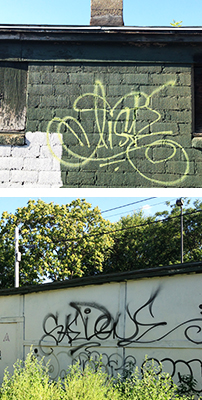 In the 1930s hobos riding the rails across America developed a complex system of marks to let other hobos know where they could find a kind heart or a warm pie. In the 1970s street kids in New York’s boroughs developed a similar system of marks calling out, like a shout into the urban darkness that they were, in fact, alive and relevant.